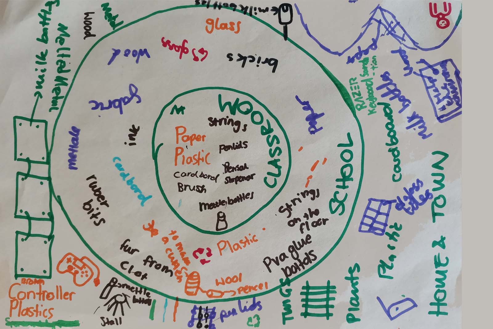 For our 'Materials' session we worked with the students to analyse objects in the Kelham Island Museum's collection, creating drawings that broke them down into components made form different materials. These formed the basis of discussions around re-use, and material sourcing (for timber, metal, ivory) and how the manufacture of these objects might be done differently today.
